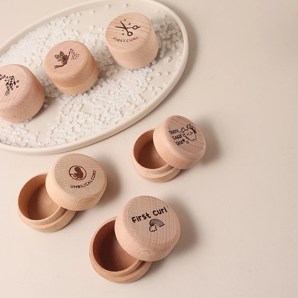 Wooden memory boxes for different milestones for your child.