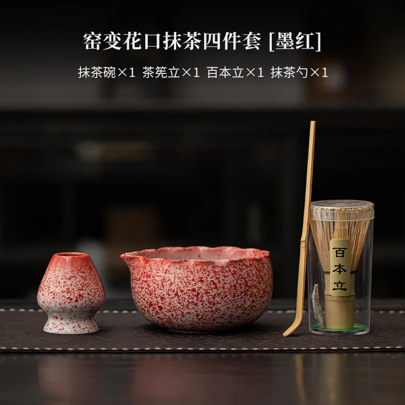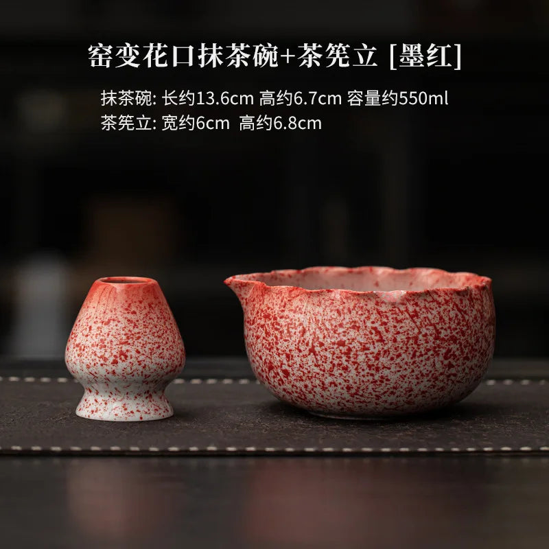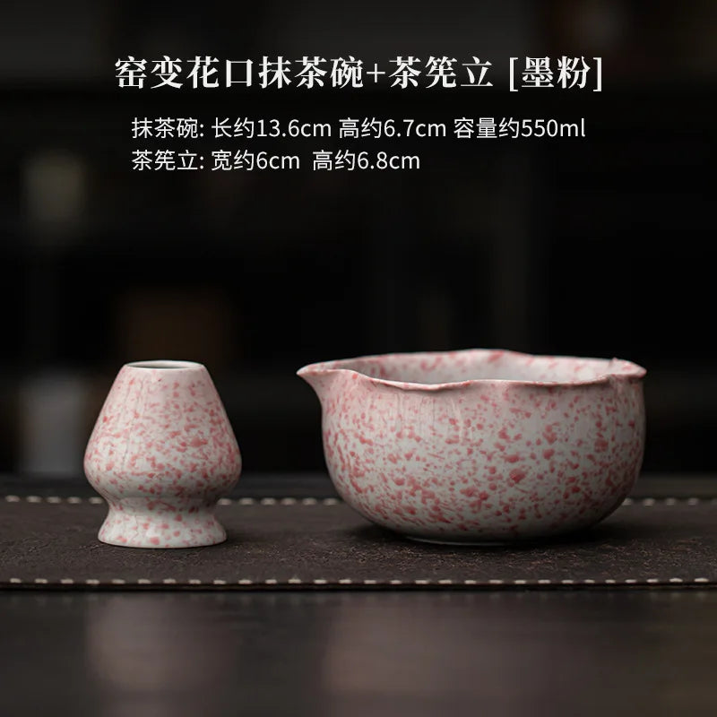 Petal Matcha Set 1-8 Pcs KilnChange Glazed Matcha Kit with Matcha Bowl Whisk Spouted Tools Handcrafted Ceremony luxury Gift Box